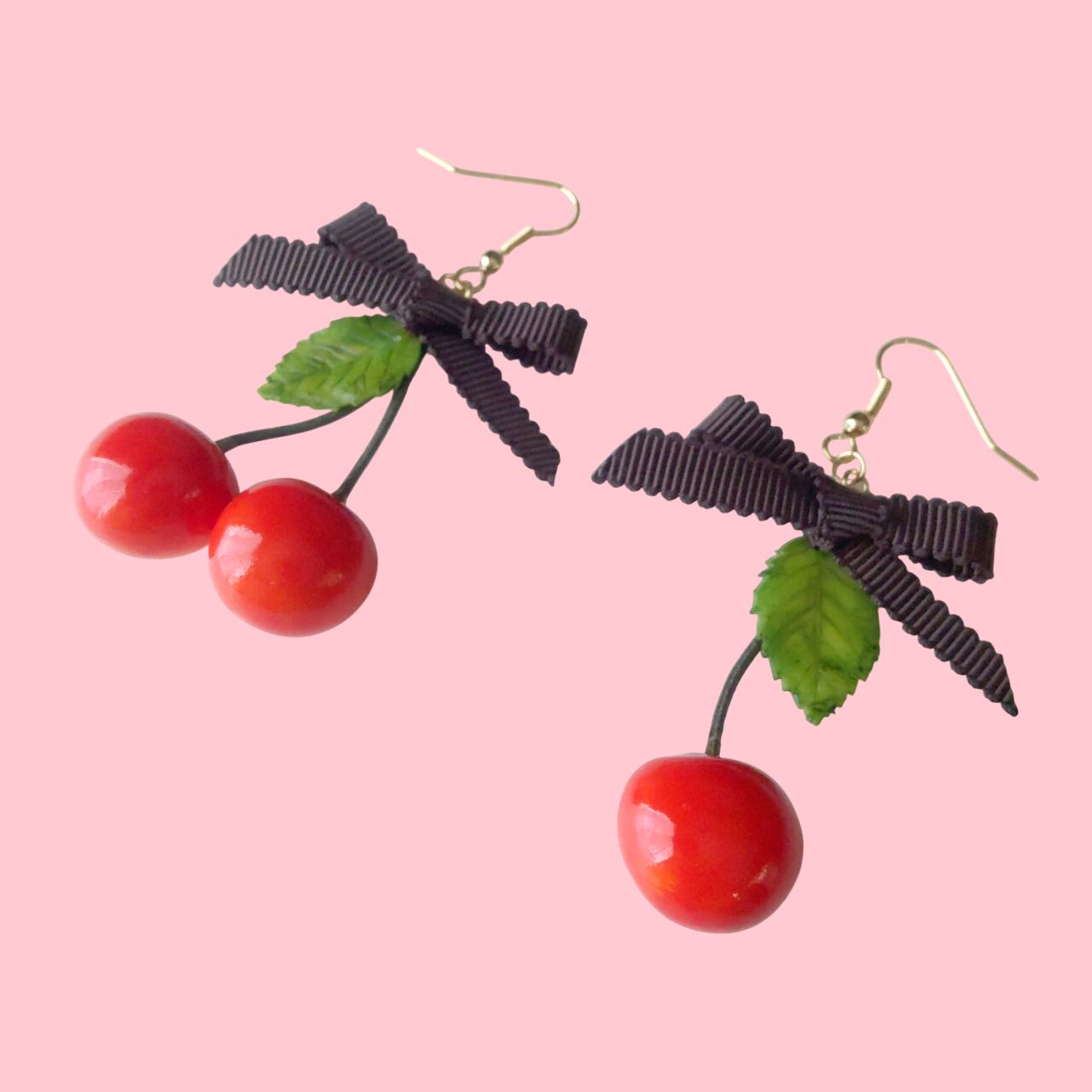 大粒のさくらんぼがゆらゆら揺れるイヤアクセサリー。