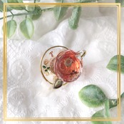 お花の柄が入ったカップ&ソーサーに紅茶を注ぎ、繊細なリングに仕立てました。