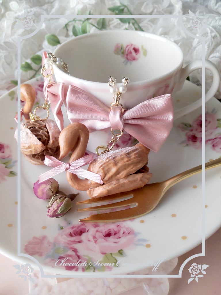 人気のスワンシューがチョコカラーで登場。ピンクのリボンと合わせて甘く美味しそうな仕上がりに。